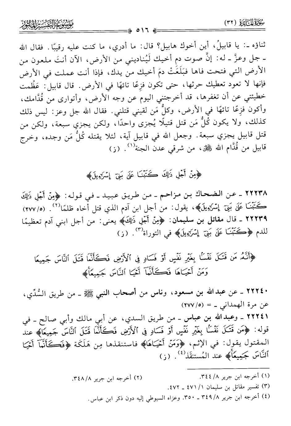 ٢٢٢٣٩ - قال مقاتل بن سليمان: {مِن أجْلِ ذَلِكَ} يعنى: من أجل ابني آدم تعظيمًا للدم {كَتَبْنا عَلى بَنِي إسْرائِيلَ} في التوراة (¬٣). (ز)