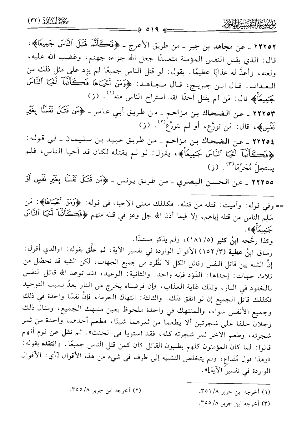 ٢٢٢٥٥ - عن الحسن البصري -من طريق يونس- {من قتل نفسا بغير نفس أو