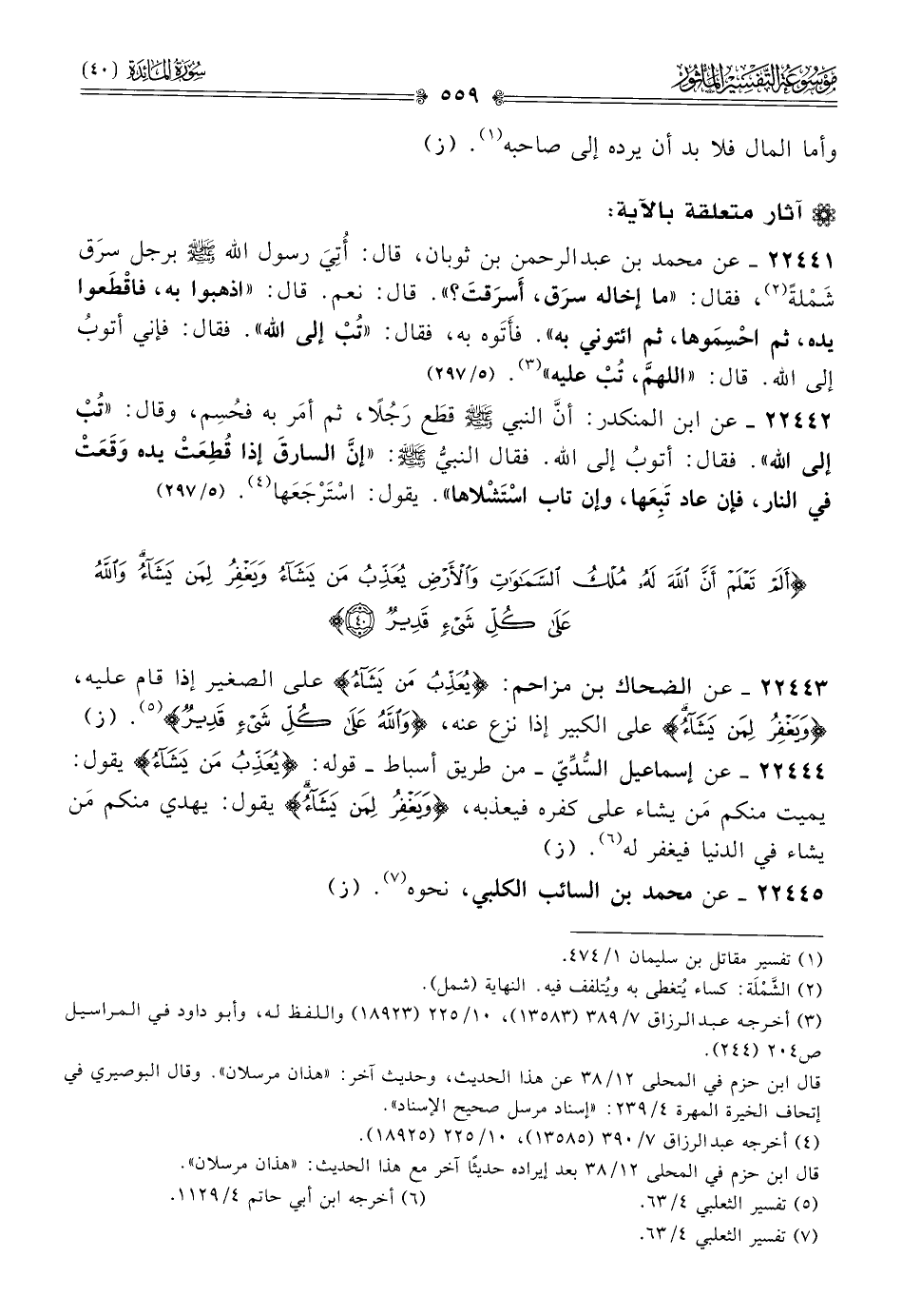 آثار متعلقة بالآية: