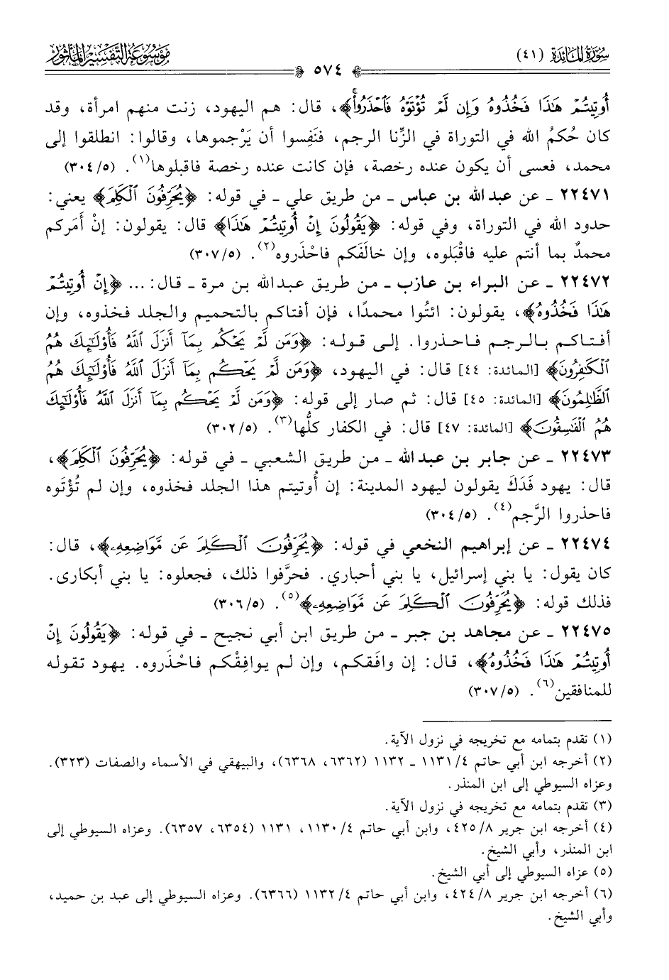 ٢٢٤٧٣ - عن جابر بن عبد الله -من طريق الشعبي- في قوله: {يحرفون الكلم}، قال: يهود فَدَكَ يقولون ليهود المدينة: إن أُوتيتم هذا الجلد فخذوه، وإن لم تُؤْتَوه فاحذروا الرَّجم (¬٤). (٥/ ٣٠٤)