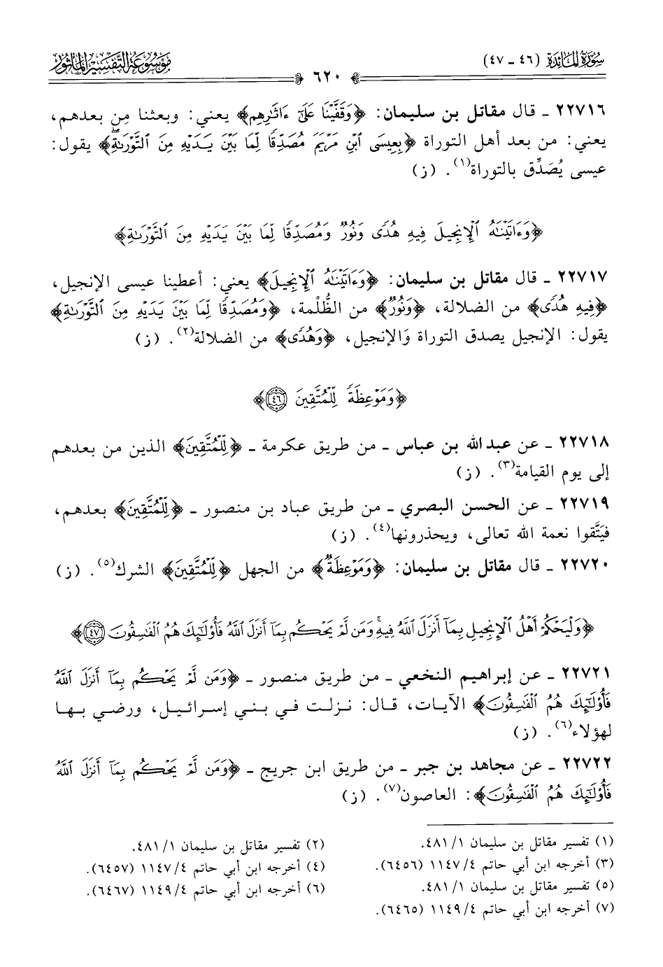 ٢٢٧٢٢ - عن مجاهد بن جبر -من طريق ابن جريج- {ومن لم يحكم بما أنزل الله فأولئك هم الفاسقون}: العاصون (¬٧). (ز)