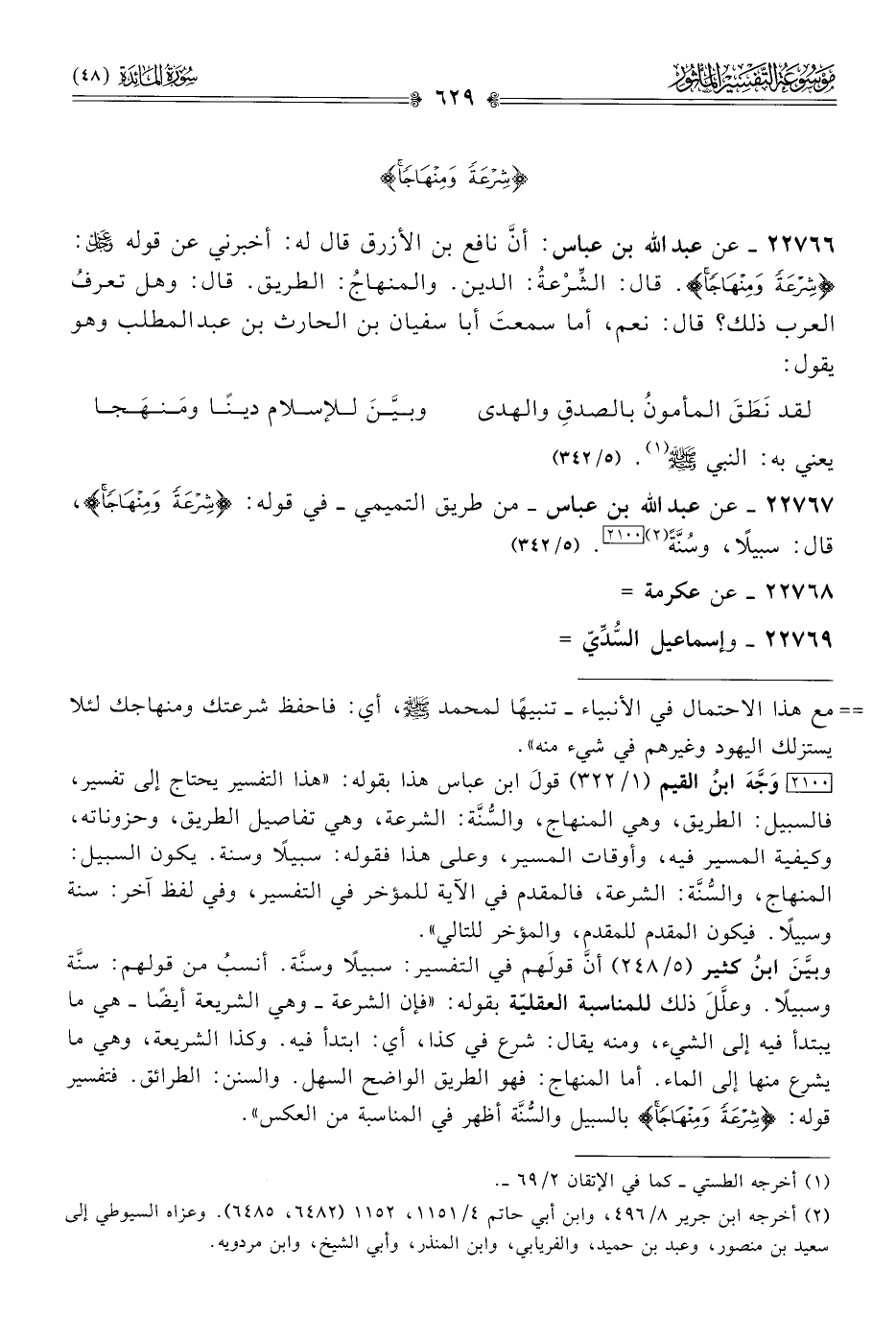 ٢٢٧٦٧ - عن عبد الله بن عباس -من طريق التميمي- في قوله: {شرعة ومنهاجا}، قال: سبيلًا، وسُنَّةً (¬٢) [٢١٠٠]. (٥/ ٣٤٢)