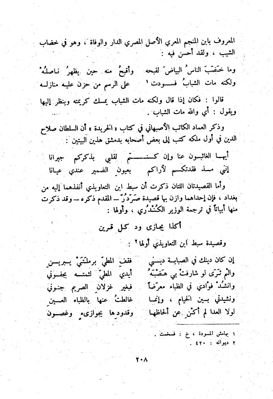 المعروف بابن المنجم المعري الأصل المصري الدار والوفاة، وهو في خضاب الشيب، ولقد أحسن فيه:
