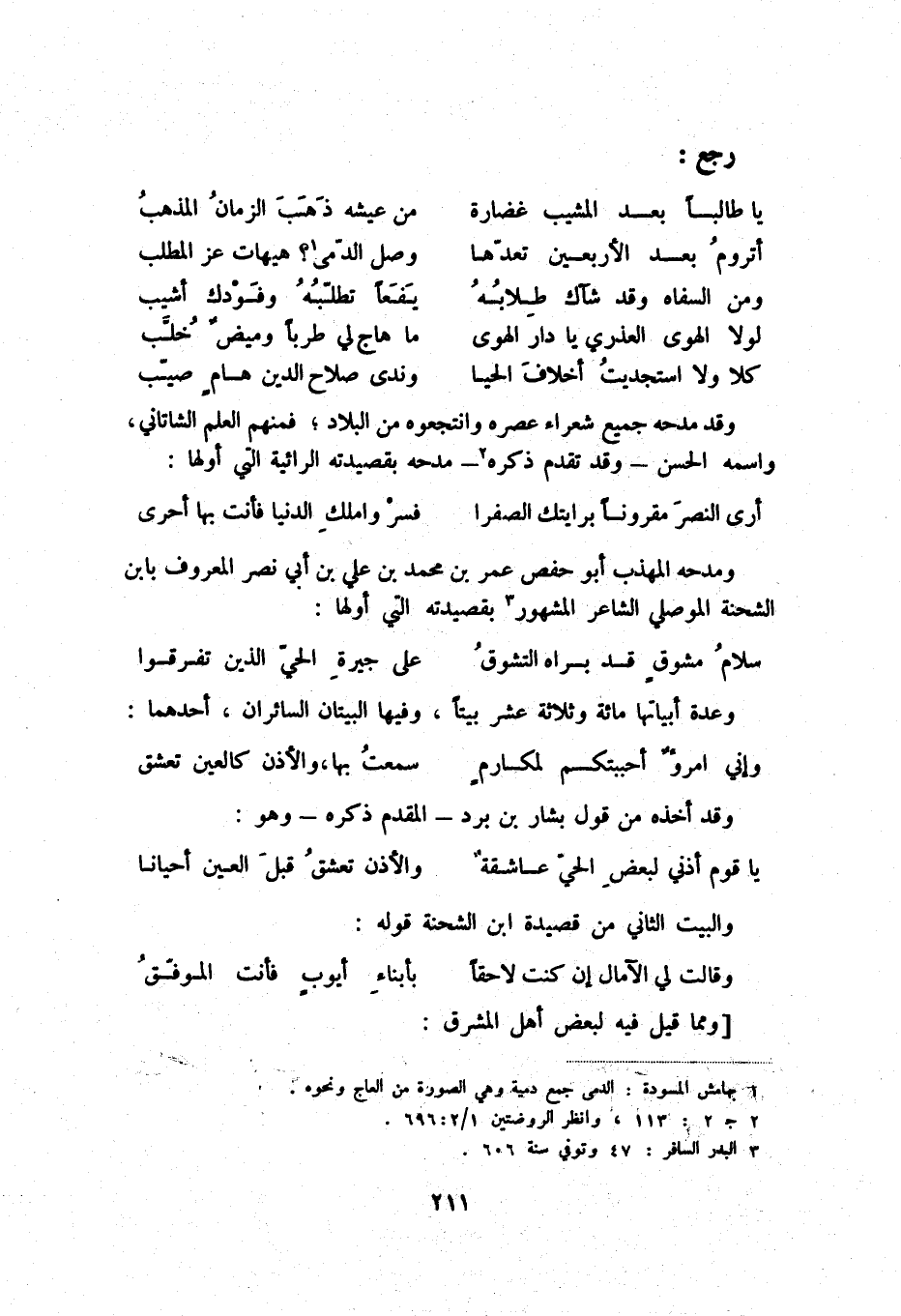 كلا ولا استجديت أخلاف الحيا ... وندى صلاح الدين هام صيب وقد مدحه جميع شعراء عصره وانتجعوه من البلاد؛ فمنهم العلم الشاتاني، واسمه الحسن - وقد تقدم ذكره (2) - مدحه بقصيدته الرائية التي أولها: