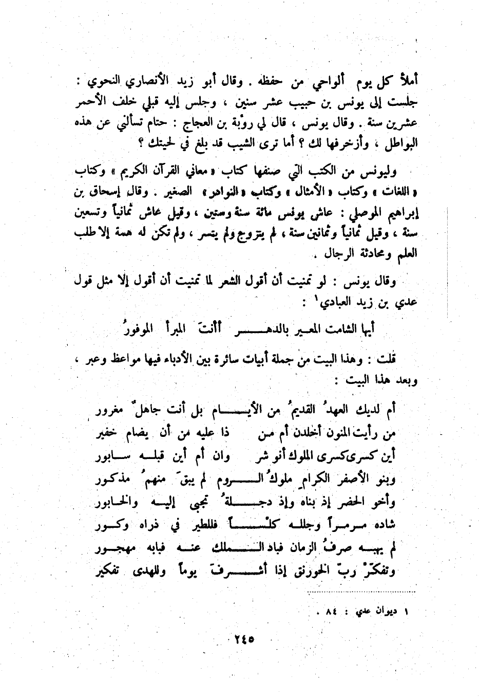 وقال يونس: لو تمنيت أن أقول الشعر لما تمنيت أن أقول إلا مثل قول عدي بن زيد العبادي (1) :