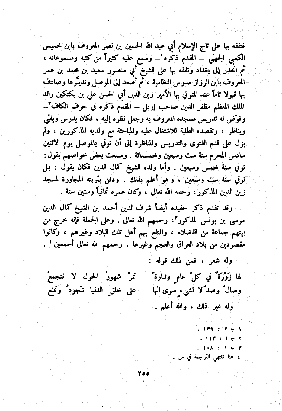 وقد تقدم ذكر حفيده أيضاً شرف الدين أحمد بن الشيخ كمال الدين موسى بن يونس المذكور (3) ، رحمهم الله تعالى. وعلى الجملة فإنه خرج من بيتهم جماعة من الفضلاء، وانتفع بهم أهل تلك البلاد وغيرهم، وكانوا مقصودين من بلاد العراق والعجم وغيرها. رحمهم الله تعالى أجمعين (4) .