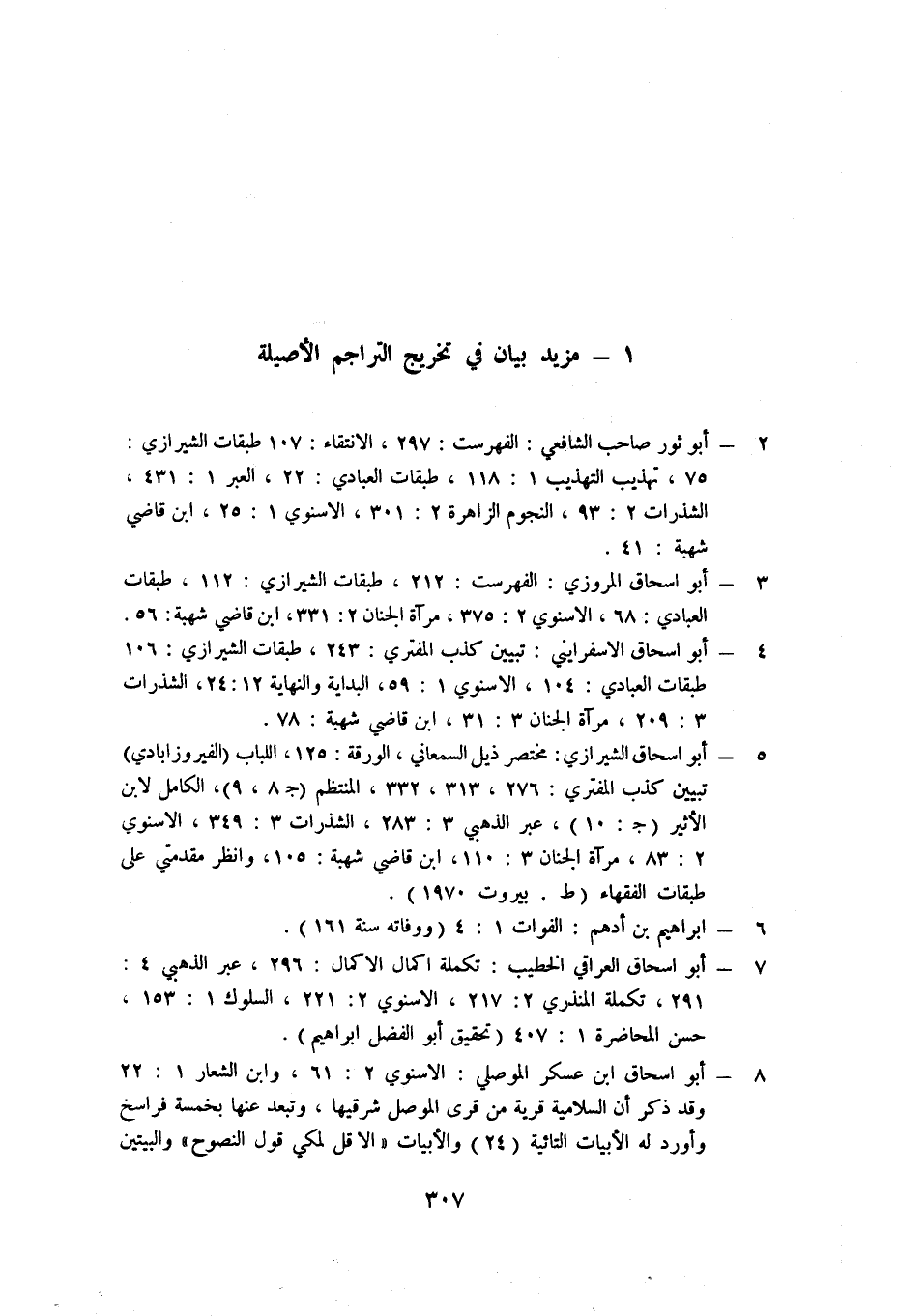 4 - أبو إسحاق الأسفرايني: تبيين كذب المفتري: 243، طبقات الشيرازي: 106 طبقات العبادي: 104، الأسنوي 1: 59، البداية والنهاية 12: 24، الشذرات 3: 209، مرآة الجنان 3: 31، ابن قاضي شهبة: 78.