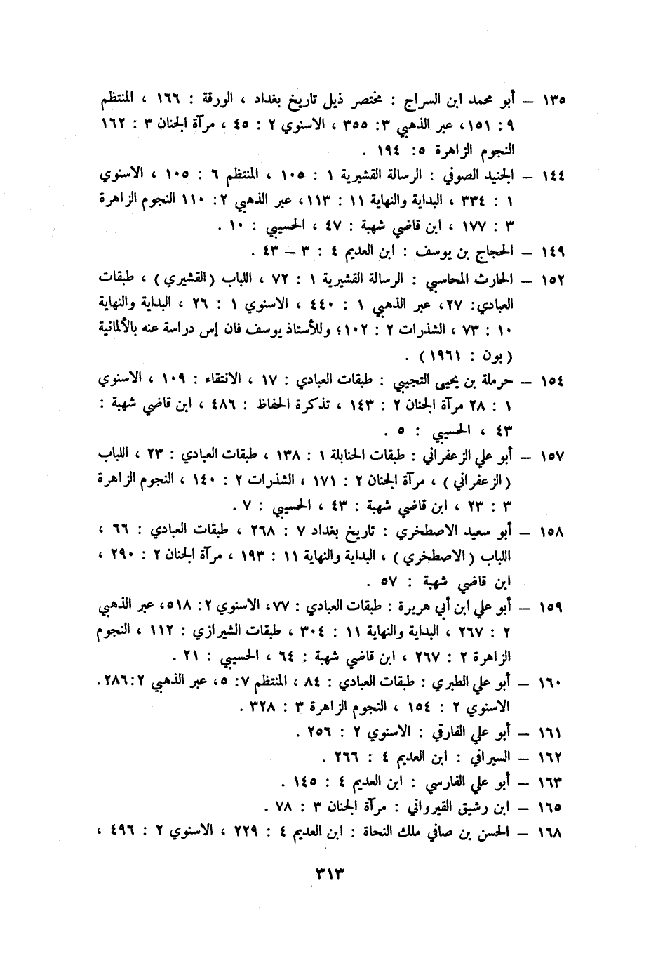 158 - أبو سعيد الاصطخري: تاريخ بغداد 7: 268، طبقات العبادي: 66، اللباب (الاصطخري) ، البداية والنهاية 11: 193، مرآة الجنان 2: 290، ابن قاضي شهبة: 57.