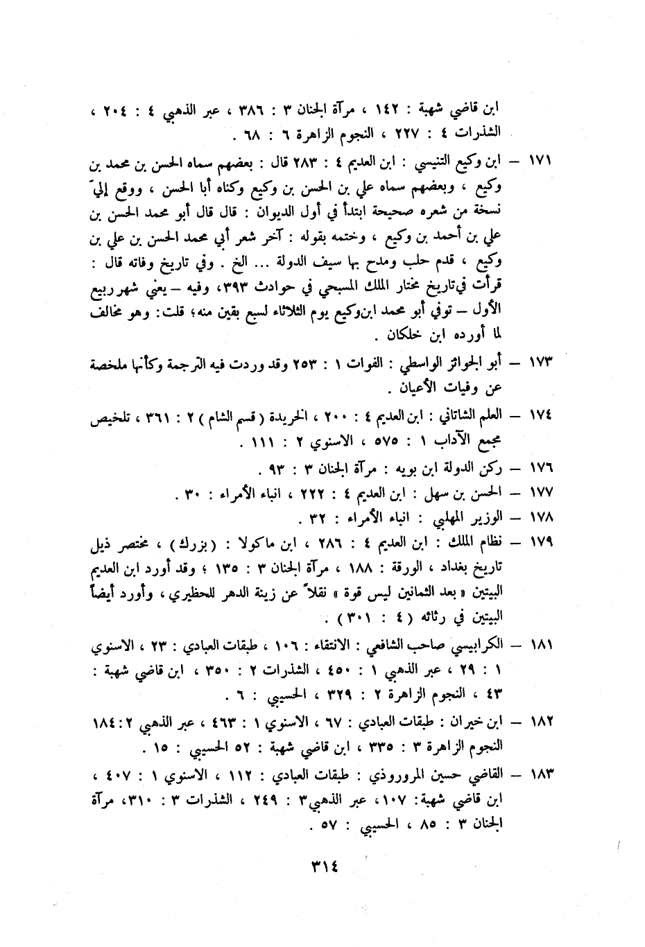 181 - الكرابيسي صاحب الشافعي: الانتقاء: 106، طبقات العبادي: 23، الأسنوي 1: 29، عبر الذهبي 1: 450، الشذرات 2: 350، ابن قاضي شهبة: 43، النجومم الزاهرة 2: 329، الحسيبي: 6.