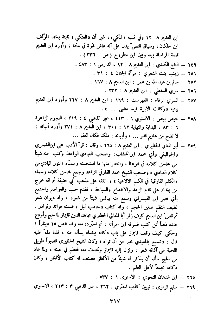249 - التاج الكندي: ابن العديم 8: 92، الدارس 1: 483.