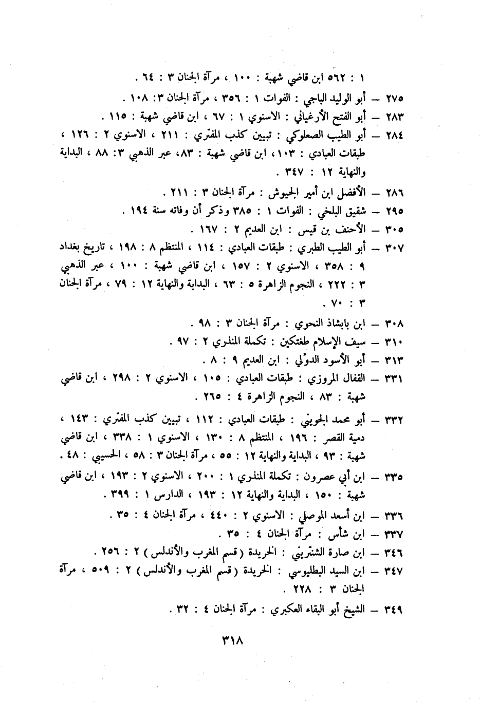 307 - أبو الطيب الطبري: طبقات العبادي: 114، المنتظم 8: 198، تاريخ بغداد 9: 358، الأسنوي 2: 157، ابن قاضي شبهة: 100، عبر الذهبي 3: 222، النجوم الزاهرة 5: 63، البداية والنهاية 12: 79، مرآة الجنان 3: 70.