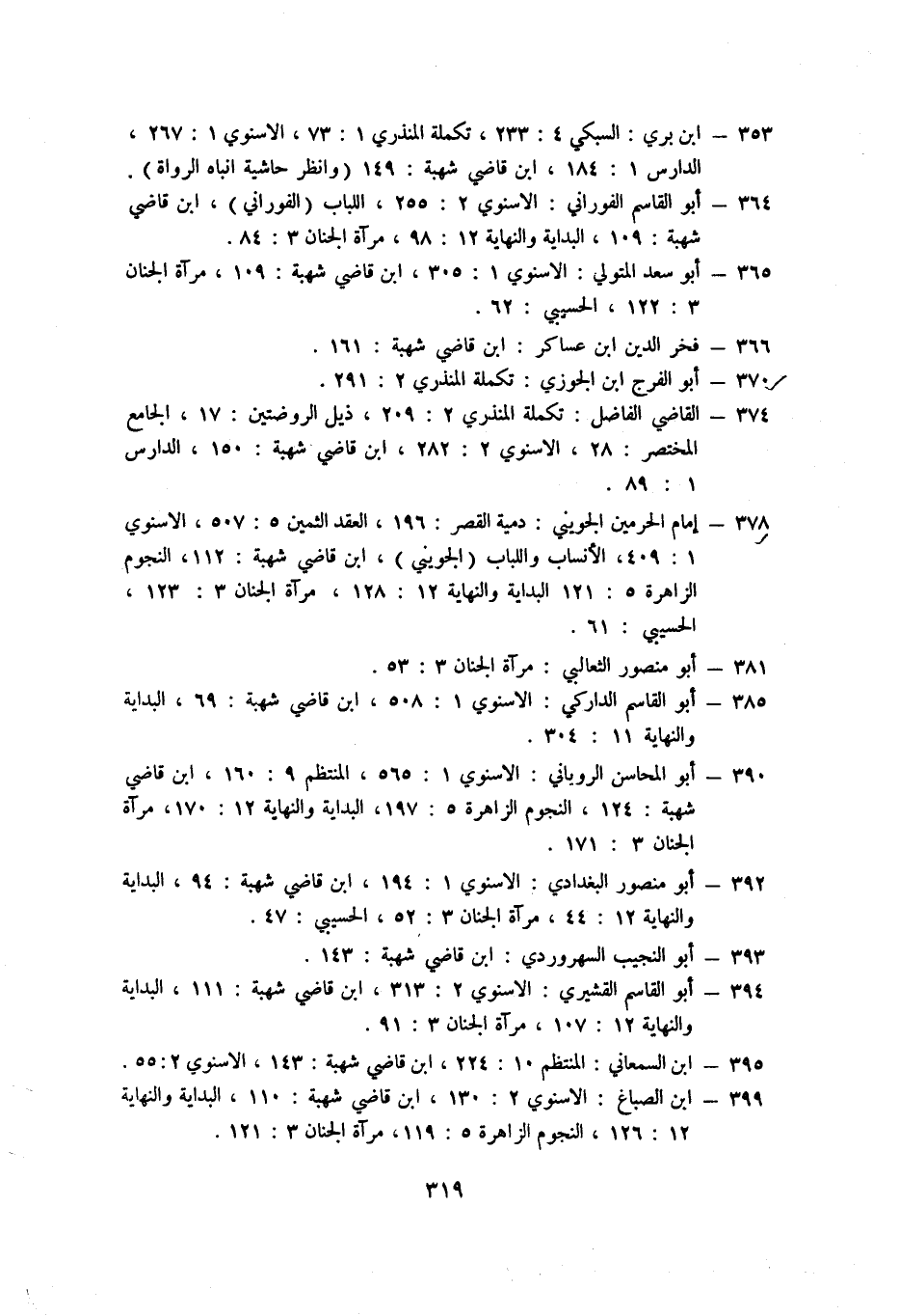 378 - إمام الحرمين الجويني: دمية القصر: 196، العقد الثمين 5: 507، الأسنوي 1: 409، الأنساب واللباب (الجويني) ، ابن قاضي شهبة: 112، النجوم الزاهرة 5: 121 البداية والنهاية 12: 128، مرآة الجنان 3: 123، الحسيبي: 61.