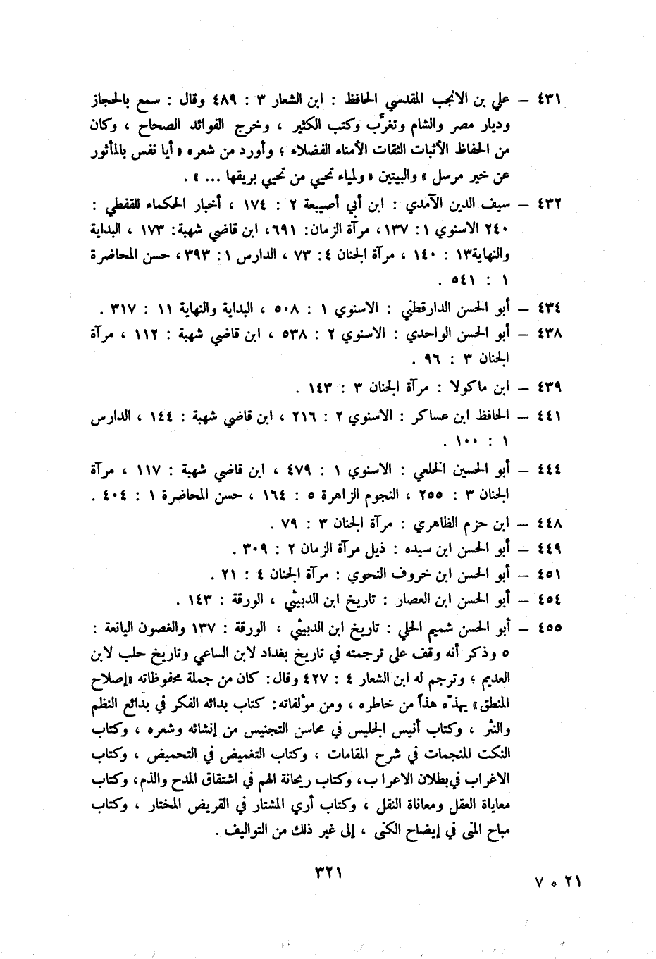 434 - أبو المحاسن الدارقطني: الأسنوي 1: 508، البداية والنهاية 11: 317.