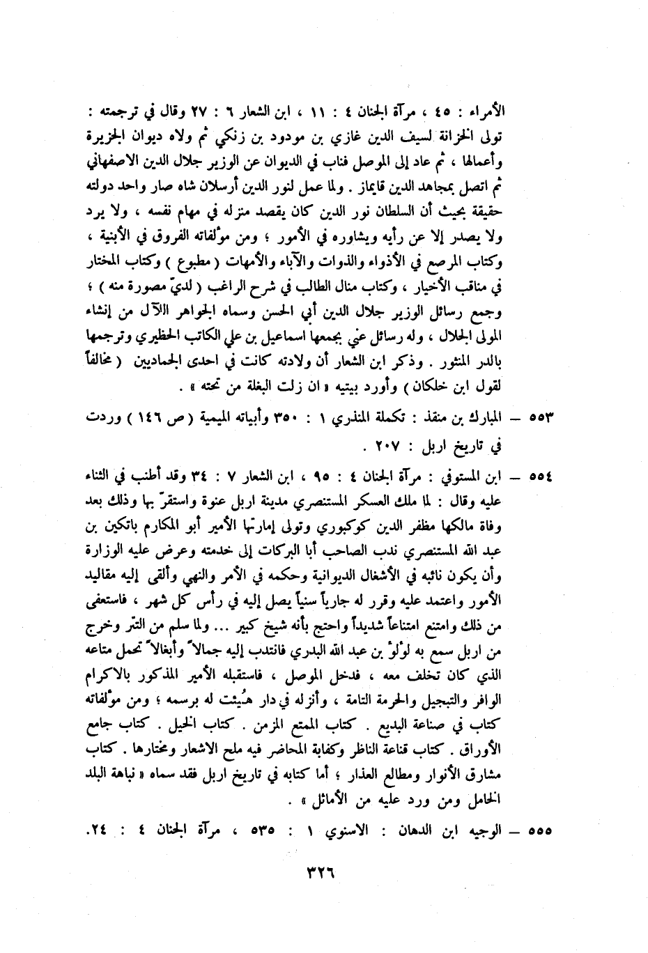 553 - المبارك بن منقذ: تكلمة المنذري 1: 350 وابياته الميمية (ص 146) وردت في تاريخ اربل: 207.