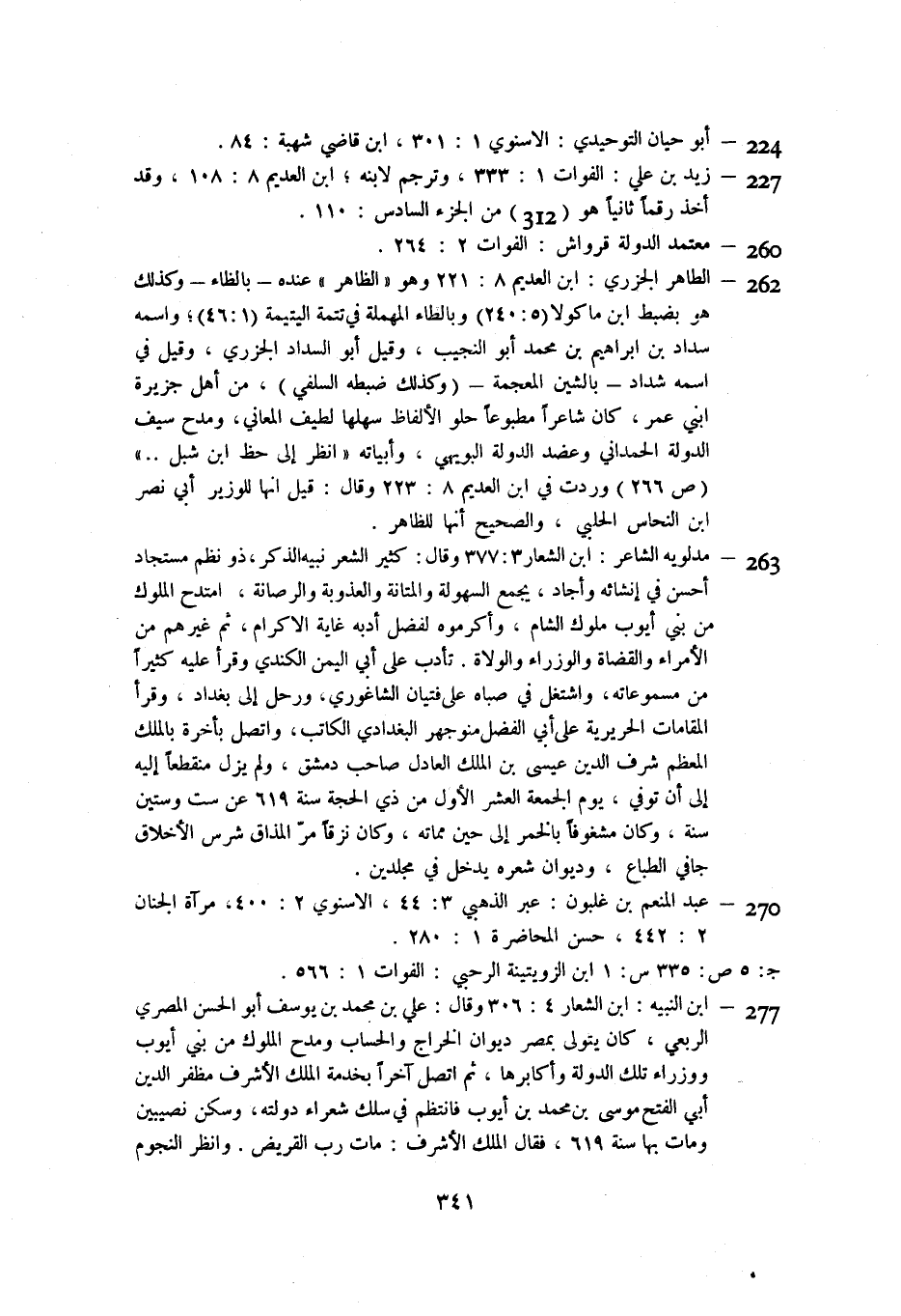 227 - زيد بن علي: الفوات 1: 333، وترجم لابنه؛ ابن العديم 8: 108، وقد أخذ رقماً ثانياً هو (312) من الجزء السادس: 110.