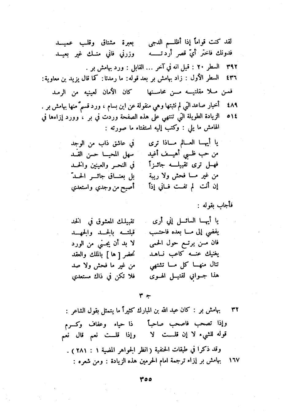 32 - بهامش بر: كان عبد الله بن المبارك كثيراً ما يتمثل بقول الشاعر: