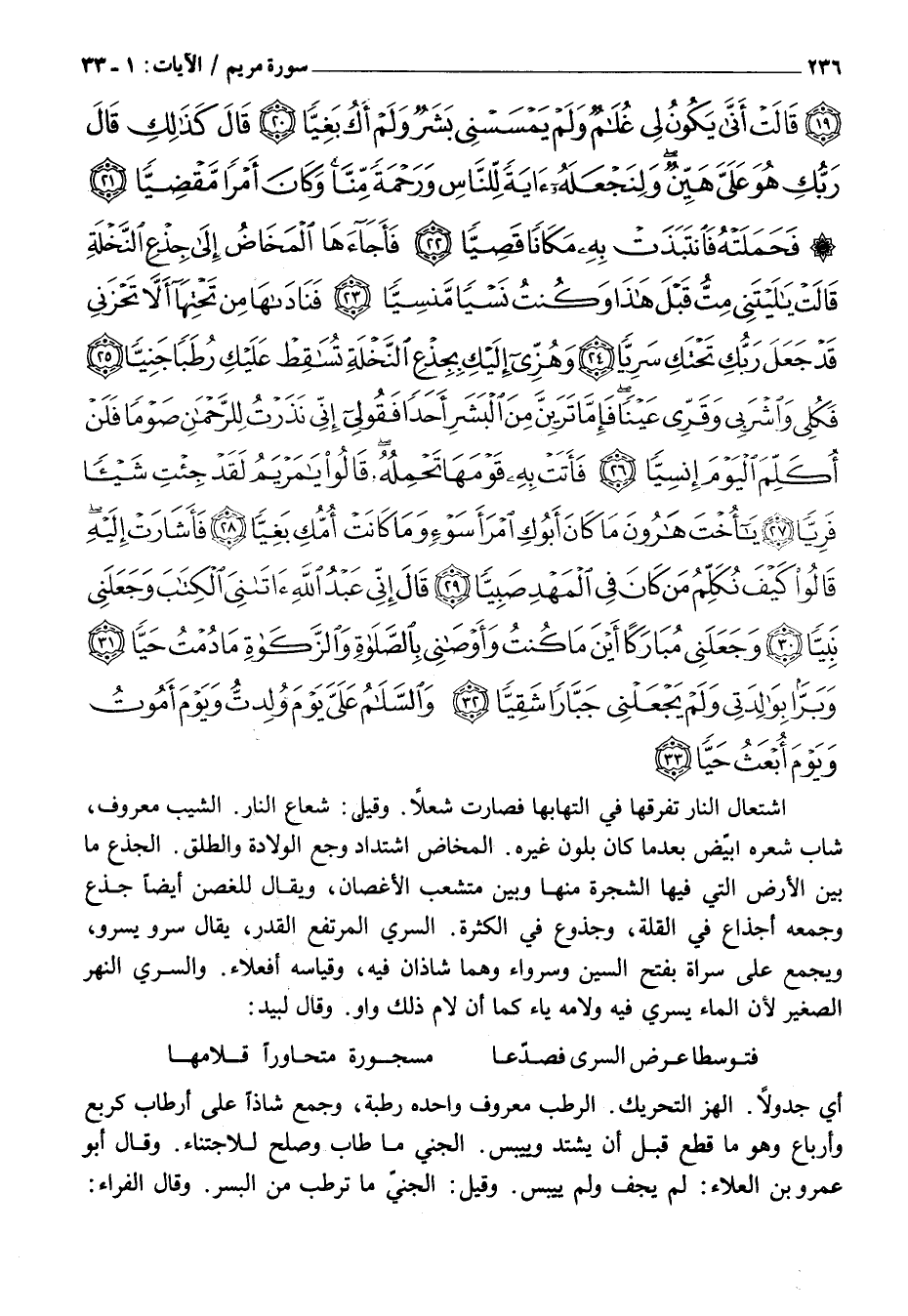 اشتغال النَّارِ تَفَرُّقُهَا فِي الْتِهَابِهَا فَصَارَتْ شُعَلًا. وَقِيلَ: شُعَاعُ النَّارِ. الشَّيْبُ مَعْرُوفٌ، شَابَ شعره ابيضّ بعد ما كَانَ بِلَوْنٍ غَيْرِهِ. الْمَخَاضُ اشْتِدَادُ وَجَعِ الْوِلَادَةِ وَالطَّلْقِ. الْجِذْعُ مَا بَيْنَ الْأَرْضِ الَّتِي فِيهَا الشَّجَرَةُ مِنْهَا وَبَيْنَ مُتَشَعَّبِ الْأَغْصَانِ، وَيُقَالُ للغضن أَيْضًا جِذْعٌ وَجَمْعُهُ أَجْذَاعٌ فِي الْقِلَّةِ، وَجُذُوعٌ فِي الْكَثْرَةِ. السَّرِيُّ الْمُرْتَفِعُ الْقَدْرِ، يُقَالُ سَرُوَ يَسْرُوُ، وَيُجْمَعُ عَلَى سَرَاةٍ بِفَتْحِ السِّينِ وَسُرَوَاءَ وَهُمَا شَاذَّانِ فِيهِ، وَقِيَاسُهُ أَفْعِلَاءُ. وَالسَّرِيُّ النَّهْرُ الصَّغِيرُ لِأَنَّ الْمَاءَ يَسْرِي فِيهِ وَلَامُهُ يَاءٌ كَمَا أَنَّ لَامَ ذَلِكَ وَاوٌ. وَقَالَ لَبِيدٌ: