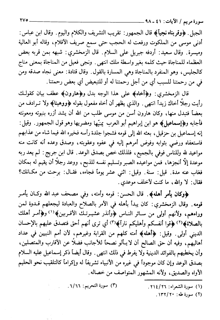 قَالَ الزَّمَخْشَرِيُّ: وأَخاهُ عَلَى هَذَا الْوَجْهِ بَدَلٌ وهارُونَ عَطْفُ بَيَانٍ كَقَوْلِكَ رَأَيْتُ رَجُلًا أَخَاكَ زَيْدًا انْتَهَى. وَالَّذِي يَظْهَرُ أَنَّ أَخَاهُ مَفْعُولٌ بِقَوْلِهِ وَوَهَبْنا وَلَا تُرَادِفُ مِنْ بَعْضًا فَتُبْدَلَ مِنْهَا، وَكَانَ هَارُونُ أَسَنَّ مِنْ مُوسَى طَلَبَ مِنَ اللَّهِ أَنْ يَشُدَّ أَزْرَهُ بنبوته ومعونته فأجابه وإِسْماعِيلَ هُوَ ابْنُ إِبْرَاهِيمَ أَبُو الْعَرَبِ يَمَنِيِّهَا وَمُضَرِيِّهَا وَهُوَ قَوْلُ الْجُمْهُورِ. وَقِيلَ: