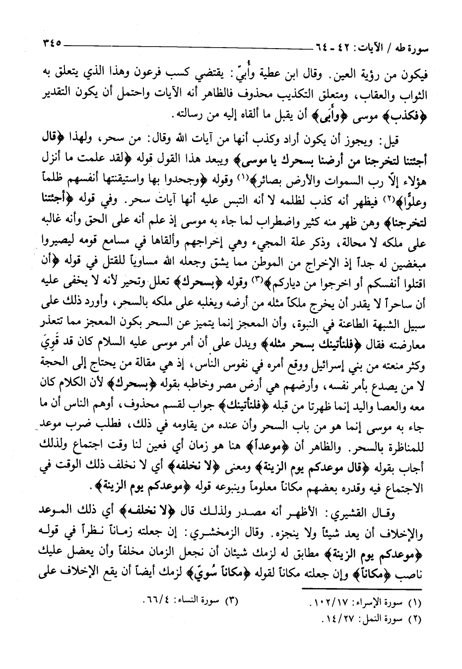 وَقَالَ الْقُشَيْرِيُّ: الْأَظْهَرُ أَنَّهُ مَصْدَرٌ وَلِذَلِكَ قَالَ لَا نُخْلِفُهُ أَيْ ذَلِكَ الْمَوْعِدَ وَالْإِخْلَافُ أَنْ يَعِدَ شَيْئًا وَلَا يُنْجِزُهُ. وَقَالَ الزَّمَخْشَرِيُّ: إِنْ جَعَلْتَهُ زَمَانًا نَظَرًا فِي قَوْلِهِ مَوْعِدُكُمْ يَوْمُ الزِّينَةِ مُطَابِقٌ لَهُ لزمك شيئان أن نجعل الزَّمَانَ مُخْلَفًا وَأَنْ يَعْضُلَ عَلَيْكَ نَاصِبُ مَكاناً وَإِنْ جَعَلْتَهُ مَكَانًا لِقَوْلِهِ مَكاناً سُوىً لَزِمَكَ أَيْضًا أَنْ يقع الإخلاف على