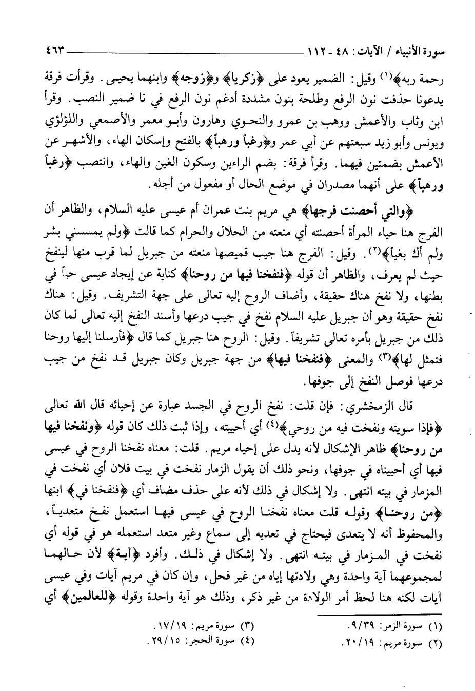 «3» وَالْمَعْنَى فَنَفَخْنا فِيها مِنْ جِهَةِ جِبْرِيلَ وَكَانَ جِبْرِيلُ قَدْ نَفَخَ مِنْ جَيْبِ دِرْعِهَا فَوَصَلَ النَّفْخُ إِلَى جَوْفِهَا.