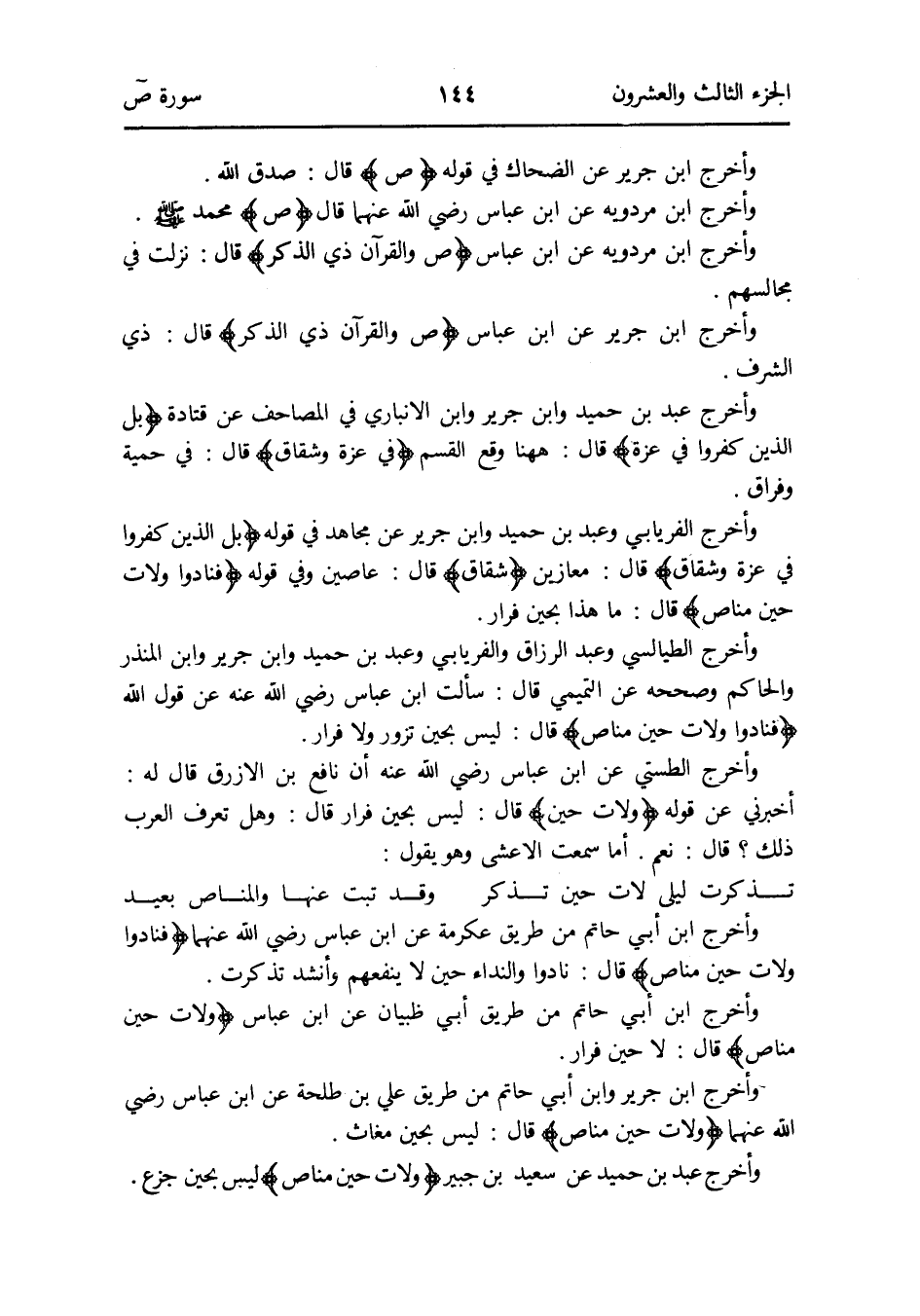 وَأخرج ابْن جرير عَن ابْن عَبَّاس {ص وَالْقُرْآن ذِي الذّكر} قَالَ: ذِي الشّرف