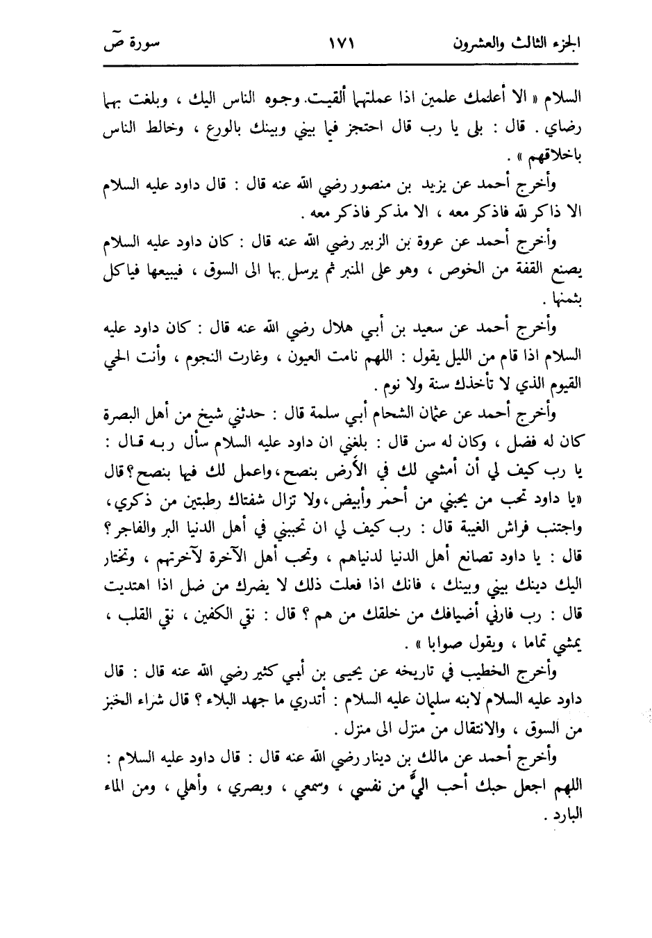 وَأخرج أَحْمد عَن عُرْوَة بن الزبير رَضِي الله عَنهُ قَالَ: كَانَ دَاوُد عَلَيْهِ السَّلَام يصنع القفة من الخوص وَهُوَ على الْمِنْبَر ثمَّ يُرْسل بهَا إِلَى السُّوق فيبيعها فيأكل بِثمنِهَا