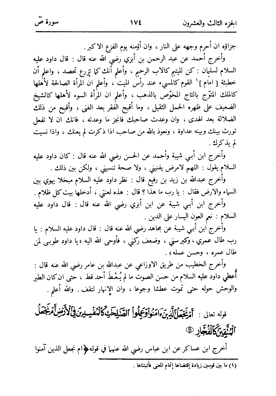 أخرج ابْن عَسَاكِر عَن ابْن عَبَّاس رَضِي الله عَنْهُمَا فِي قَوْله {أم نجْعَل الَّذين آمنُوا وَعمِلُوا الصَّالِحَات كالمفسدين فِي الأَرْض}