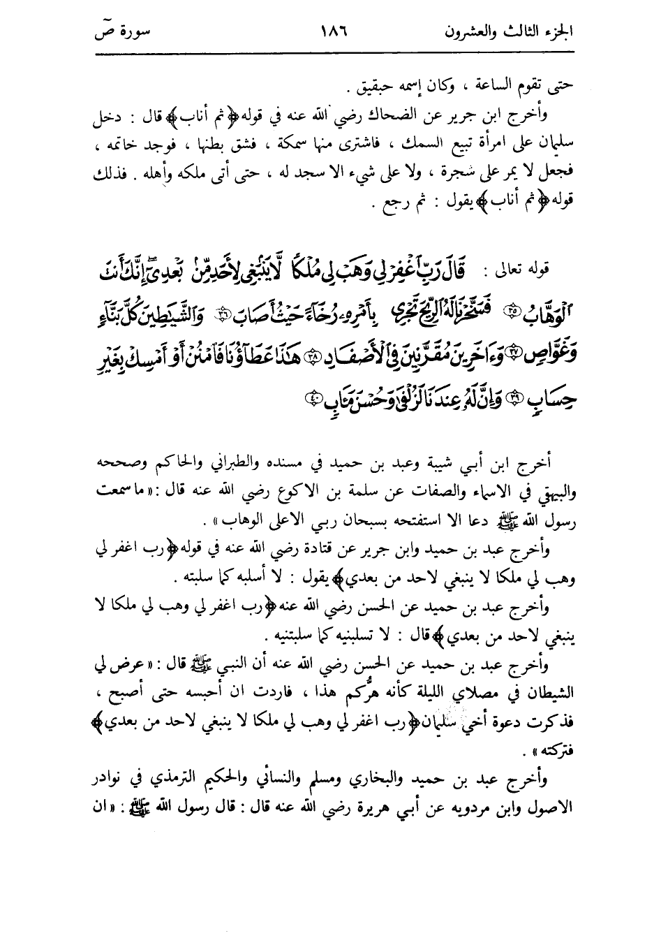 وَأخرج عبد بن حميد وَابْن جرير عَن قَتَادَة رَضِي الله عَنهُ فِي قَوْله {رب اغْفِر لي وهب لي ملكا لَا يَنْبَغِي لأحد من بعدِي} يَقُول: لَا أسلبه كَمَا سلبته
