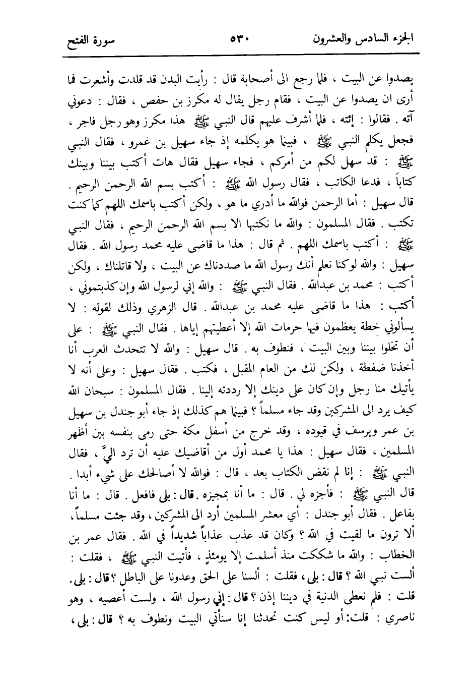 فَقَالَ الْمُسلمُونَ: وَالله مَا نكتبها إِلَّا بِسم الله الرَّحْمَن الرَّحِيم