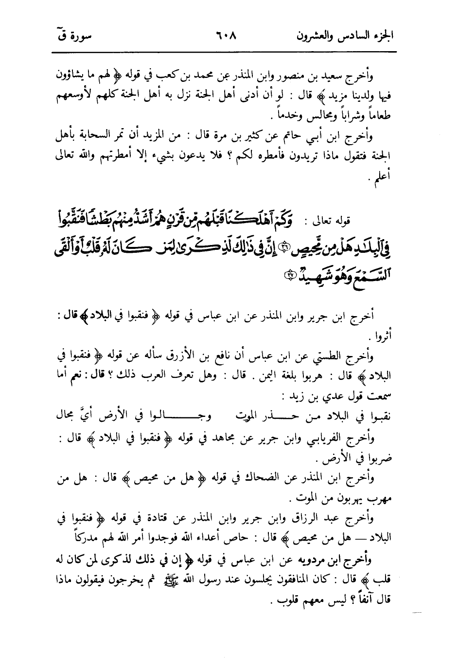 وَأخرج عبد الرَّزَّاق وَابْن جرير وَابْن الْمُنْذر عَن قَتَادَة فِي قَوْله {فَنقبُوا فِي الْبِلَاد هَل من محيص} قَالَ: حَاص أَعدَاء الله فوجدوا أَمر الله لَهُم مدْركا