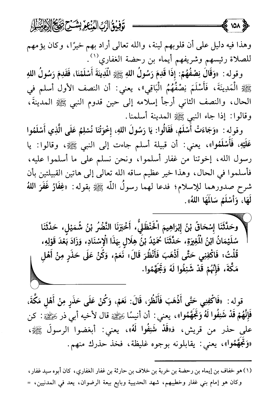 (¬١) هو خفاف بن إيماء بن رحضة بن خربة بن خلاف بن حارثة بن غفار الغفاري، كان أبوه سيد غفار، وكان هو إمام بني غفار وخطيبهم، شهد الحديبية وبايع بيعة الرضوان، يعد في المدنيين، وتوفي في خلافة عمر بن الخطاب رضي الله عنه بالمدينة. أسد الغابة، لابن الأثير (١/ ٦١٥)، الاستيعاب في معرفة الأصحاب، لابن عبد البر (٢/ ٤٤٩).