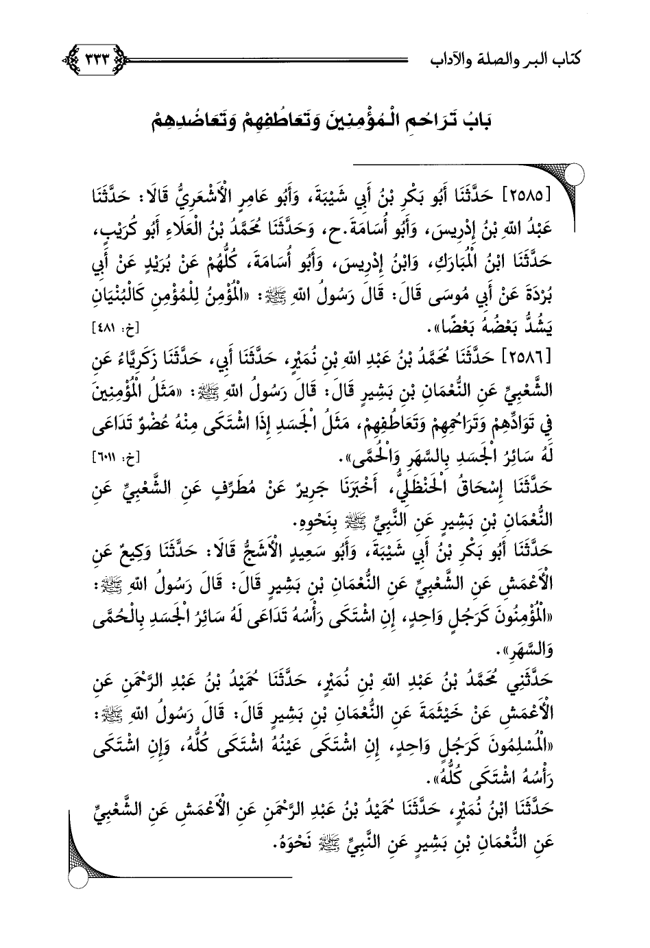 بَابُ تَرَاحُمِ الْمُؤْمِنِينَ وَتَعَاطُفِهِمْ وَتَعَاضُدِهِمْ