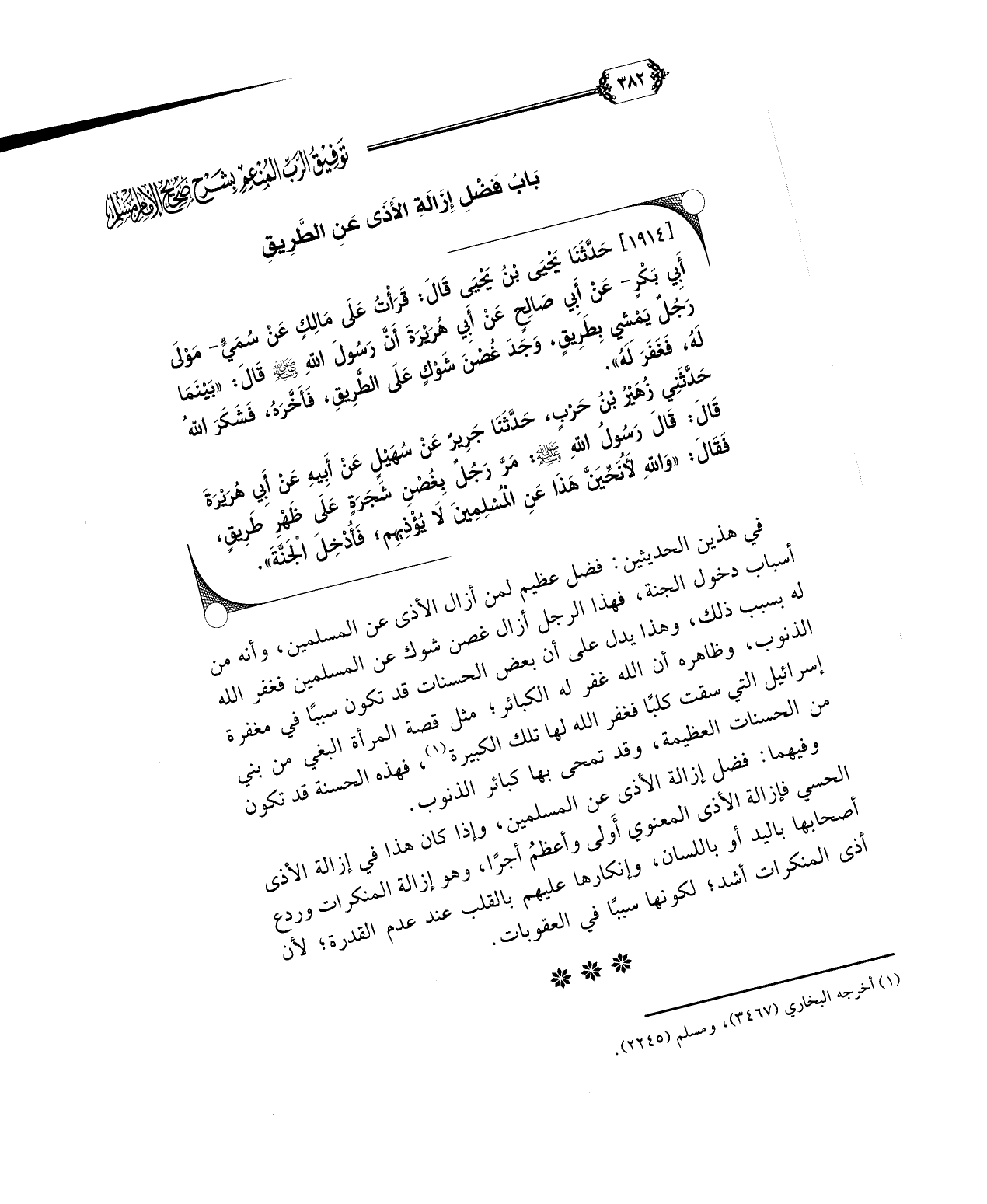 بَابُ فَضْلِ إِزَالَةِ الْأَذَى عَنِ الطَّرِيقِ