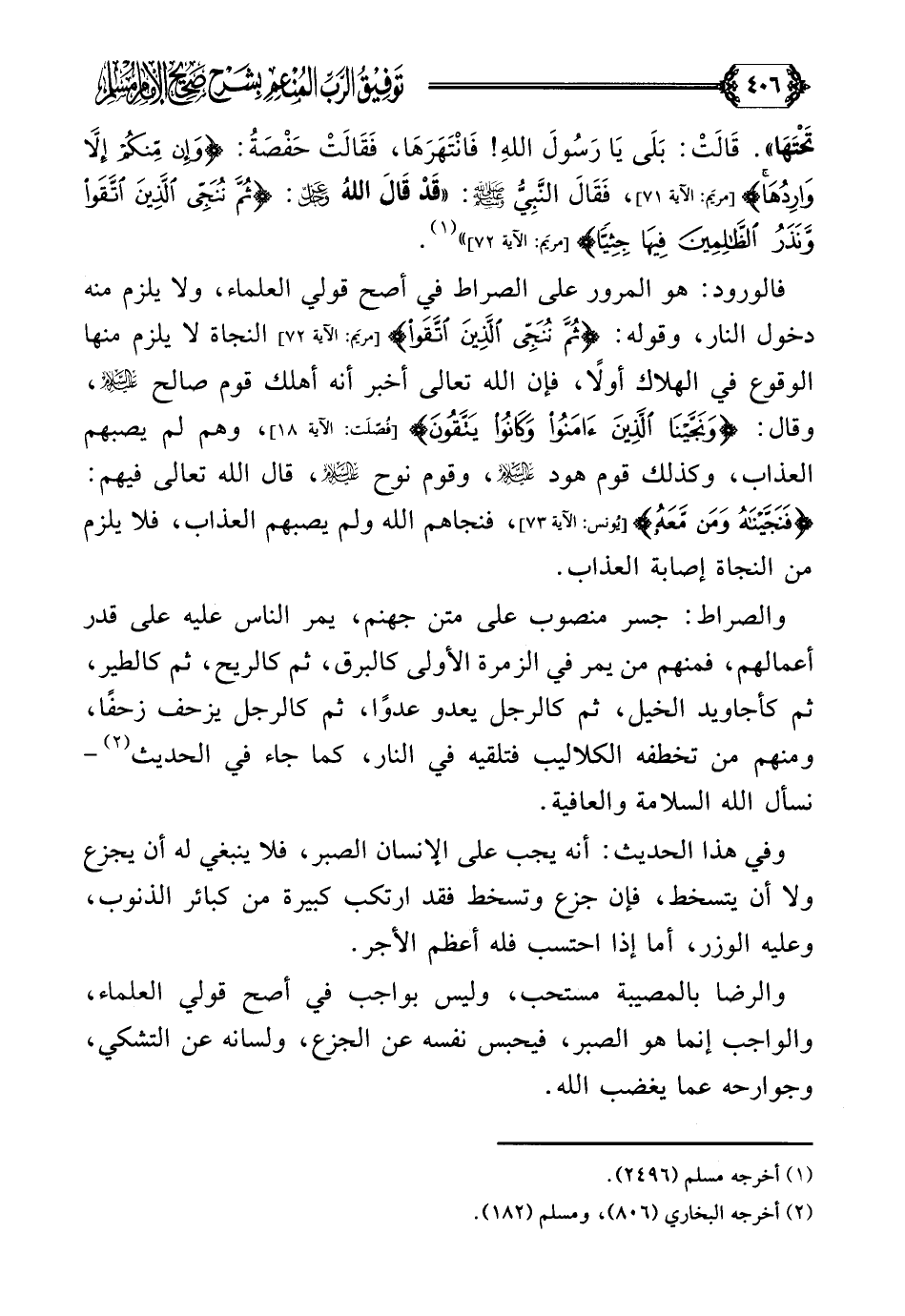 فالورود: هو المرور على الصراط في أصح قولي العلماء، ولا يلزم منه دخول النار، وقوله: {ثم ننجي الذين اتقوا} النجاة لا يلزم منها الوقوع في الهلاك أولًا، فإن الله تعالى أخبر أنه أهلك قوم صالح عليه السلام، وقال: {ونجينا الذين آمنوا وكانوا يتقون}، وهم لم يصبهم العذاب، وكذلك قوم هود عليه السلام، وقوم نوح عليه السلام، قال الله تعالى فيهم: {ونجيناه ومن معه}، فنجاهم الله ولم يصبهم العذاب، فلا يلزم من النجاة إصابة العذاب.