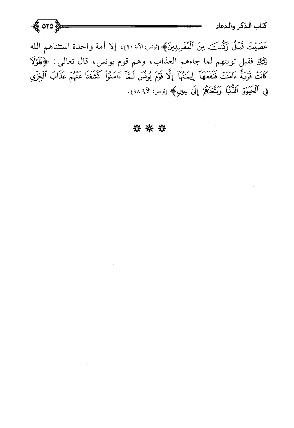 عصيت قبل وكنت من المفسدين}، إلا أمة واحدة استثناهم الله عز وجل فقبل توبتهم لما جاءهم العذاب، وهم قوم يونس، قال تعالى: {فلولا أن كانت قريت آمنت فنفعها إيمانها إلا قوم يونس لما آمنوا كشفنا عنهم عذاب الخزي في الحياة الدنيا ومتعناهم إلى حين}.