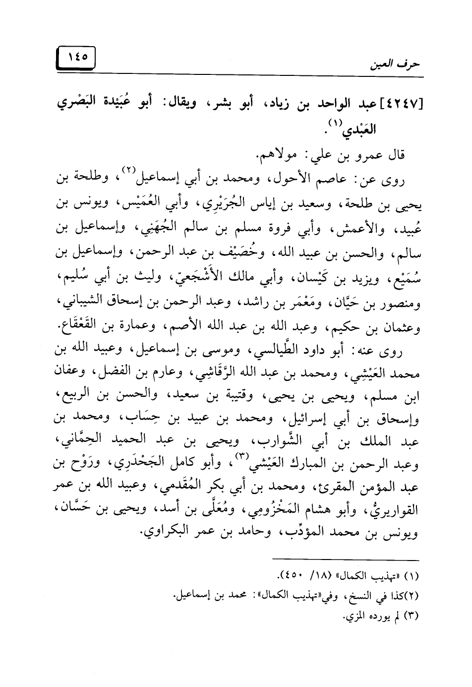 [٤٢٤٧] عبد الواحد بن زياد، أبو بشر، ويقال: أبو عُبَيْدة البَصْري العَبْدي (¬١).