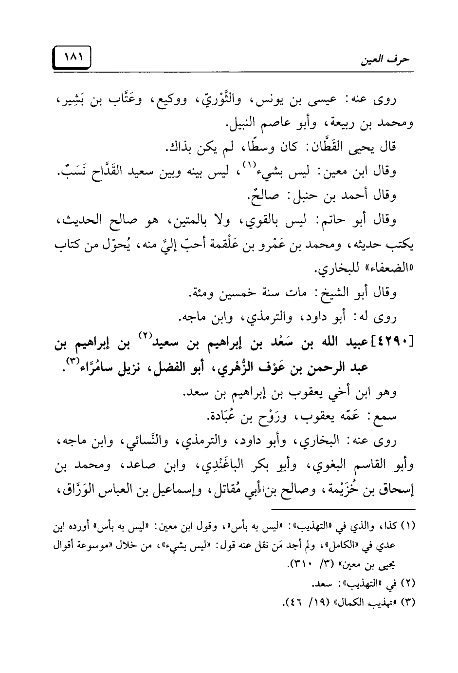 [٤٢٩٠] عبيد الله بن سَعْد بن إبراهيم بن سعيد (¬٢) بن إبراهيم بن عبد الرحمن بن عَوْف الزُّهْري، أبو الفضل، نزيل سامُرَّاء (¬٣).