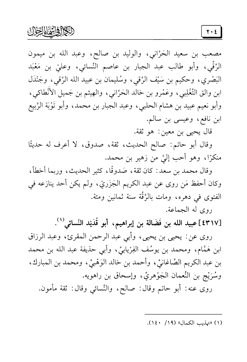 (¬١) "تهذيب الكمال" (١٩/ ١٤٠).