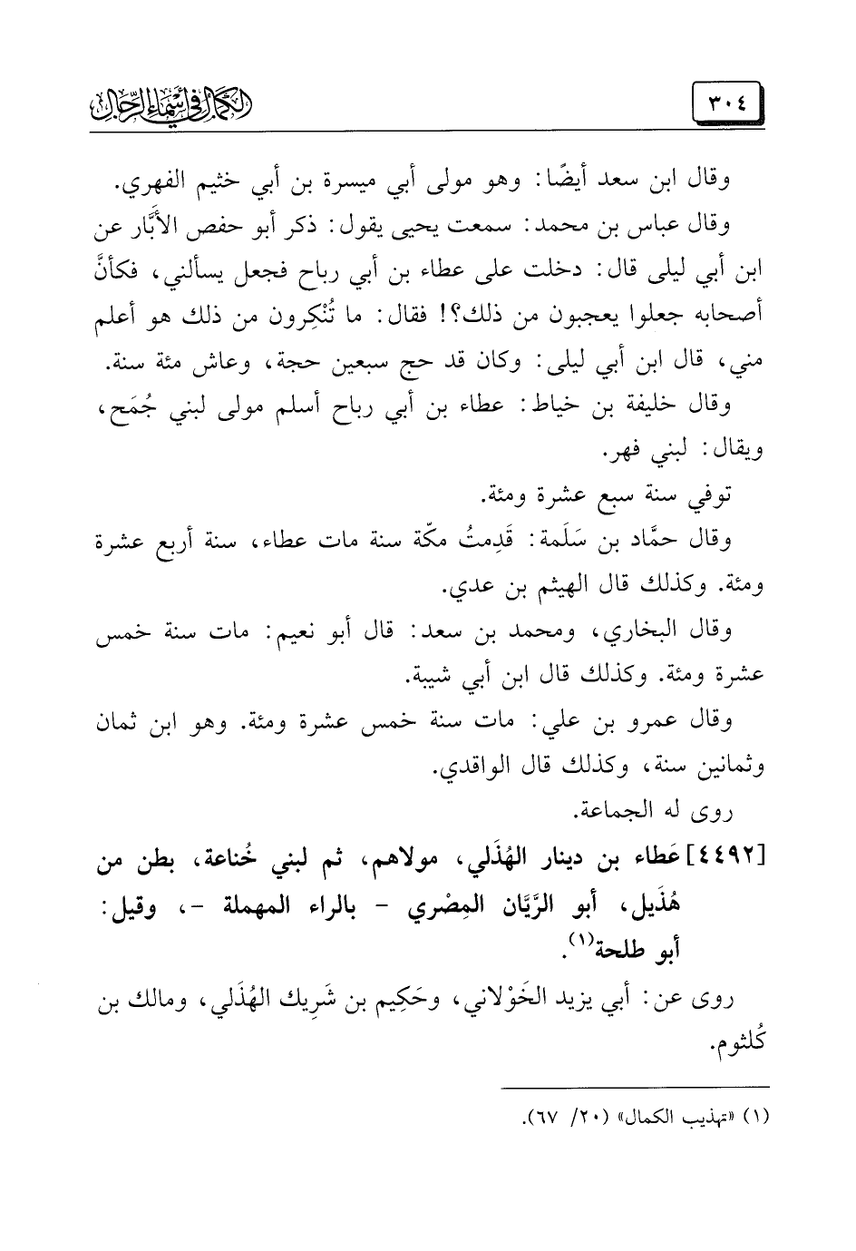(¬١) "تهذيب الكمال" (٢٠/ ٦٧).