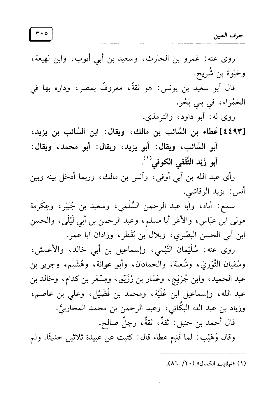 [٤٤٩٣] عَطاء بن السَّائب بن مالك، ويقال: ابن السَّائب بن يزيد، أبو السَّائب، ويقال: أبو يزيد، ويقال: أبو محمد، ويقال: أبو زَيْد الثَّقَفِي الكوفي (¬١).