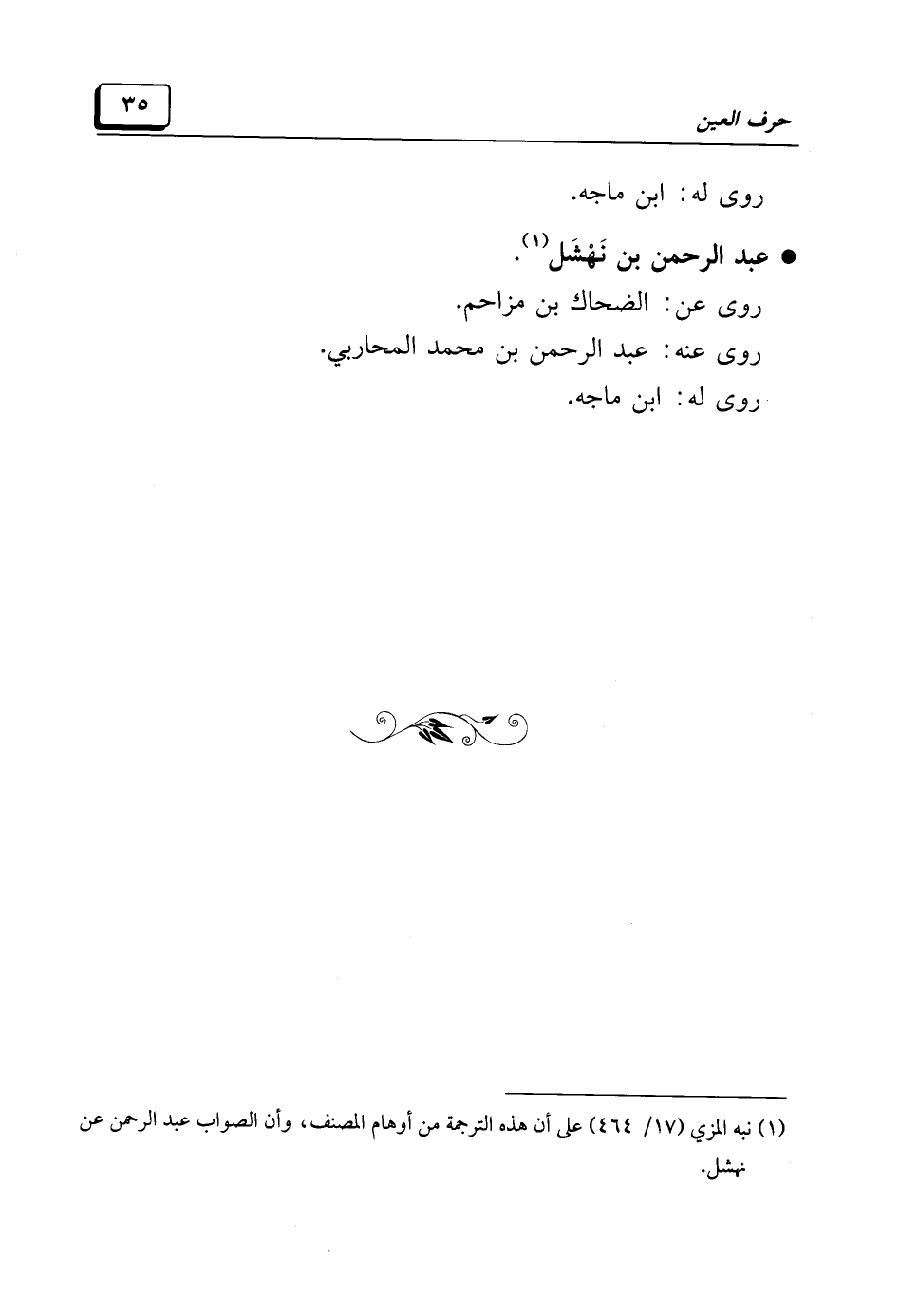 (¬١) نبه المزي (١٧/ ٤٦٤) على أن هذه الترجمة من أوهام المصنف، وأن الصواب عبد الرحمن عن نهشل.