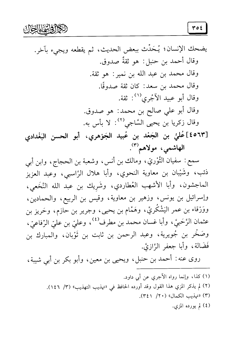 [٤٥٦٣] عُليُّ بن الجَعْد بن عُبيد الجَوْهري، أبو الحسن البَغْدادي الهاشمي، مولاهم (¬٣).