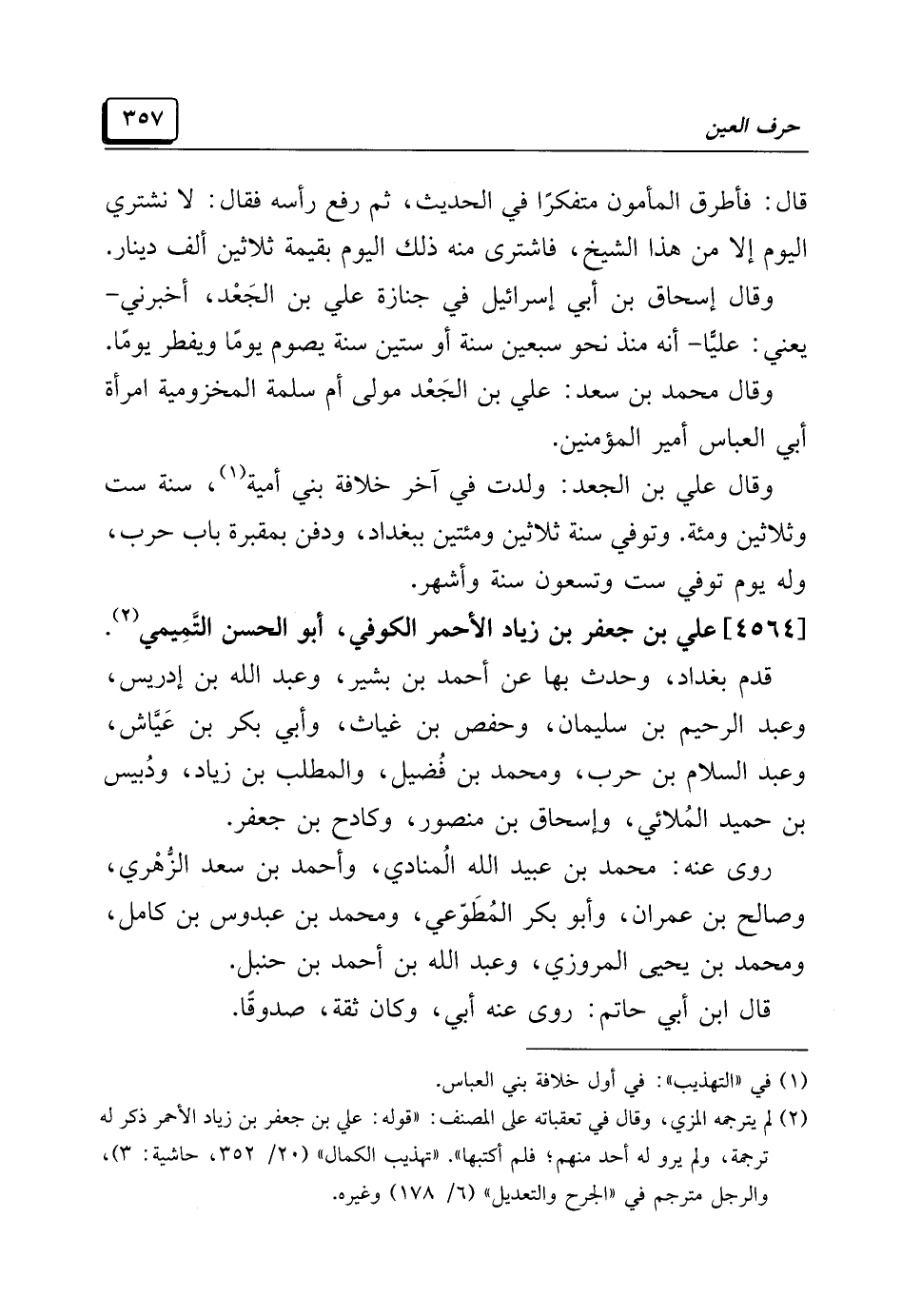 (¬٢) لم يترجمه المزي، وقال في تعقباته على المصنف: "قوله: علي بن جعفر بن زياد الأحمر ذكر له ترجمة، ولم يرو له أحد منهم؛ فلم أكتبها". "تهذيب الكمال" (٢٠/ ٣٥٢، حاشية: ٣) , والرجل مترجم في "الجرح والتعديل" (٦/ ١٧٨) وغيره.