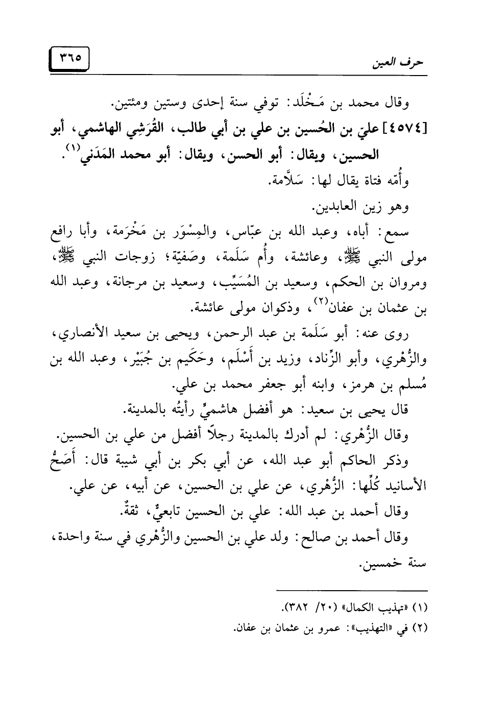 [٤٥٧٤] عليّ بن الحُسين بن علي بن أبي طالب، القُرَشِي الهاشمي، أبو الحسين، ويقال: أبو الحسن، ويقال: أبو محمد المَدَني (¬١).