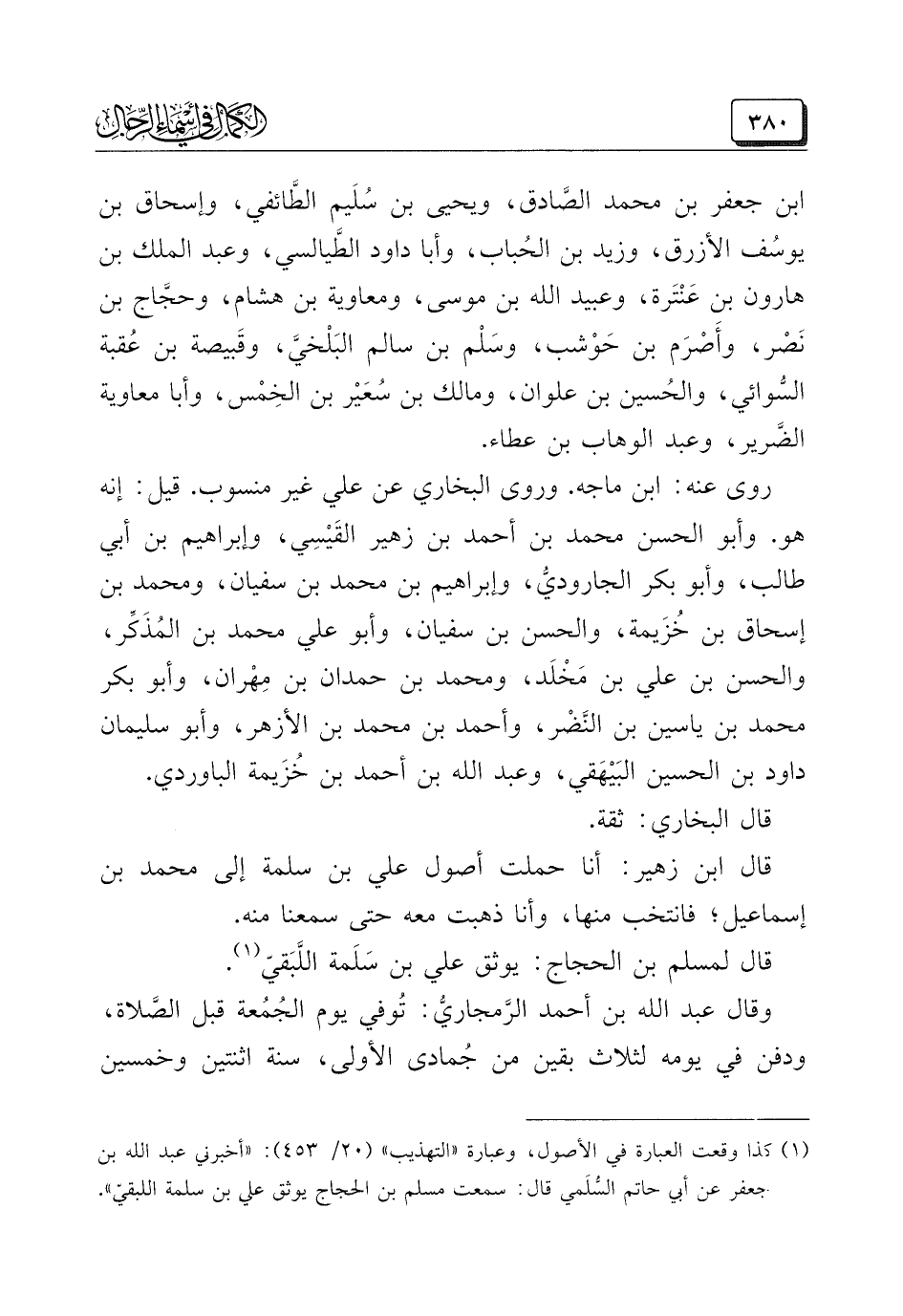 (¬١) كذا وقعت العبارة في الأصول، وعبارة "التهذيب" (٢٠/ ٤٥٣): "أخبرني عبد الله بن جعفر عن أبي حاتم السُّلَمي قال: سمعت مسلم بن الحجاج يوثق علي بن سلمة اللبقيّ".