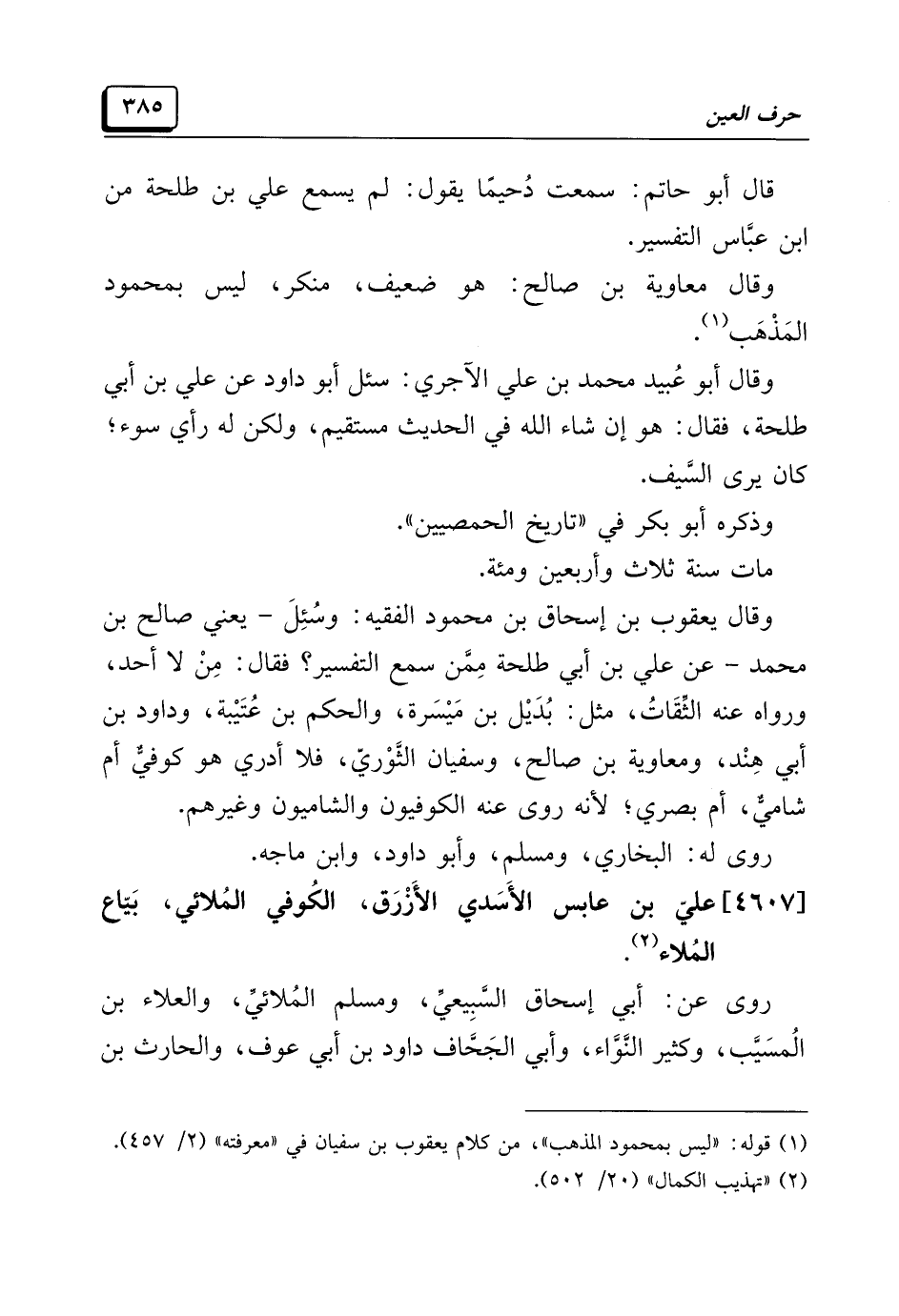 قال أبو حاتم: سمعت دُحيمًا يقول: لم يسمع علي بن طلحة من ابن عبَّاس التفسير.