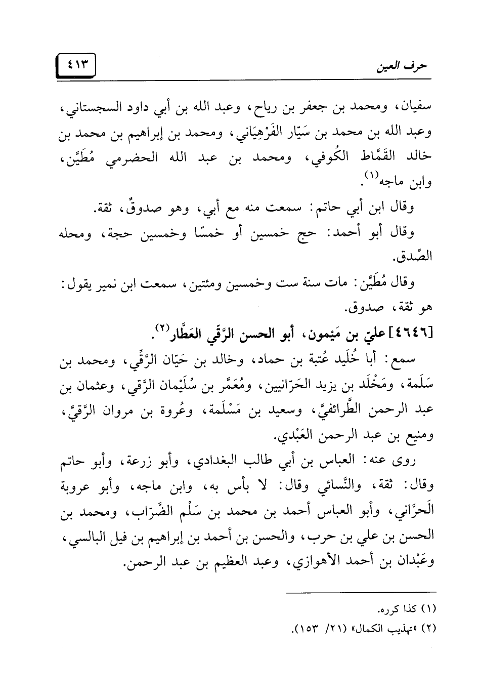 (¬٢) "تهذيب الكمال" (٢١/ ١٥٣).