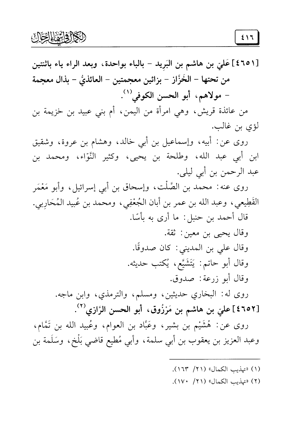 (¬١) "تهذيب الكمال" (٢١/ ١٦٣).