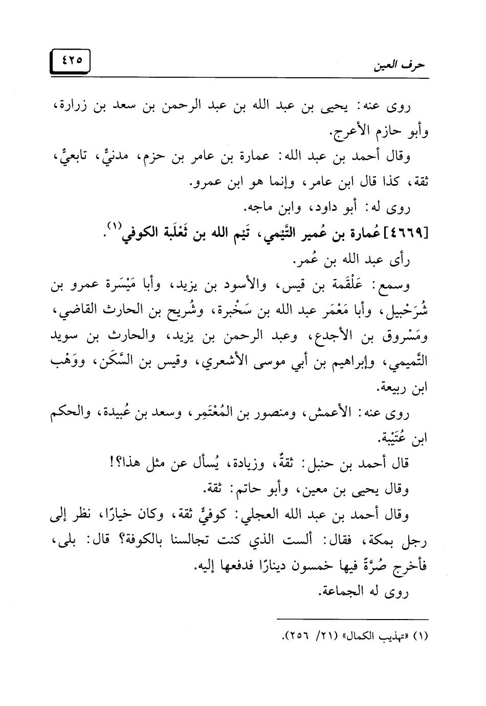 (¬١) "تهذيب الكمال" (٢١/ ٢٥٦).