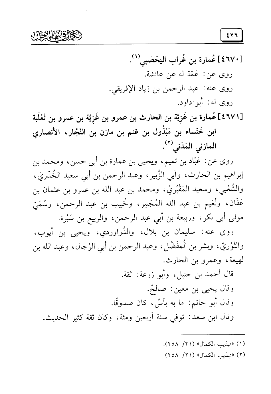 (¬٢) "تهذيب الكمال" (٢١/ ٢٥٨).